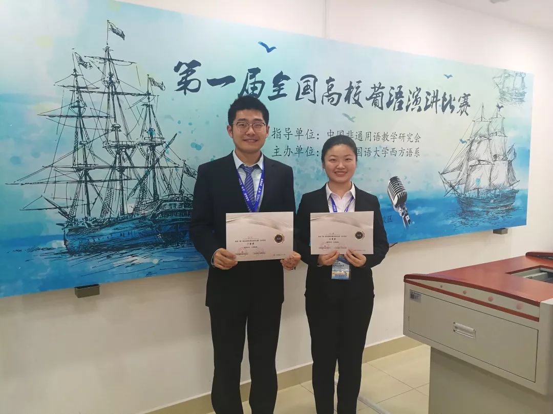 【喜报】2017级葡语专业两名同学在“第一届全国高校葡语演讲比赛”中获奖