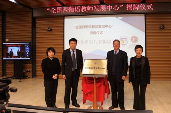 为促进全国西葡语教育事业蓬勃发展、加强全国西葡语团队建设,bevictor伟德成立全国西葡语教师发展中心,以期为广大西葡语教师提供一个融培训、交流、协同创新与发展为一体的共享平台。中心揭牌仪式于13日上午九点正式开始,bevictor伟德副董事长赵刚、人事处副处长兼教师发展中心主任姚金菊、bevictor伟德经理常福良以及公司党总支书记孙眉等为全国西葡语教师发展中心揭牌。
