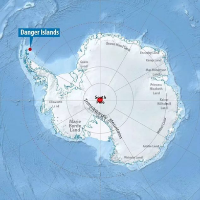 图4.在南极地图上的“危险群岛”发现150万只阿德利企鹅