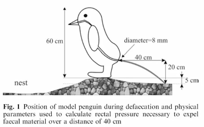 图2.企鹅排便站姿模型及计算排便40厘米时直肠压力物理参数